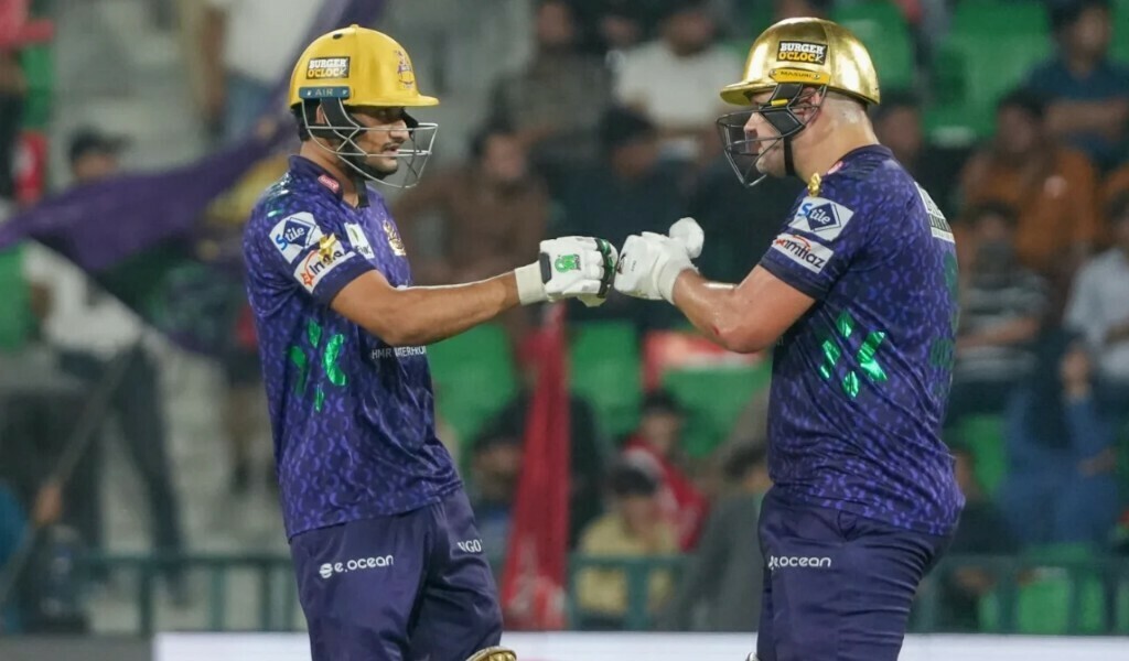 Quetta had a shaky start, with openers Saud Shakeel and Finn Allen managing only 24 runs before Allen was run out for 5 in the third over. Shakeel added a quick 36 runs alongside Rossouw before falling to Naseem Shah in the final over of the powerplay, finishing with 23 off 18 balls (three boundaries).